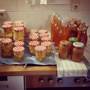 Da ich dieses mal so viel wie möglich aus den Äpfeln rausholen wollte, hab ich versucht aus denselben Äpfeln gleichzeitig Kompott, Mus und Saft herzustellen 😀