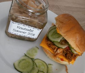 Nachdem ich seit Ewigkeiten Lust auf einen Burger hatte, aber ständig vergessen habe Hackfleisch zu besorgen, habe ich mich gestern kurzerhand entschieden einfach einen Pulled Chicken Burger aus den gefrorenen Hähnchensteaks zu machen. Verwendet hab ich dafür meinen selbstgemachten Tomatenketchup. Alternativ könnte man aber auch eine Mischung aus Ketchup und Barbecuesauce verwenden. Für den Burger