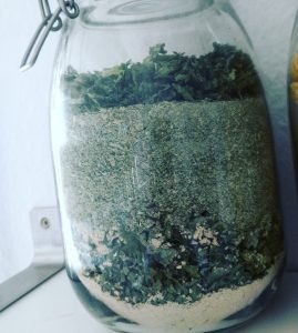 Eins der wichtigsten Würzen in der Küche ist für mich, mein selbst gemachtes Gemüsebrühpulver. Grundsätzlich gilt hier einfach, Gemüse säubern, abwiegen, klein häckseln* und dann mit 10% Salz mischen. Am besten verwendet man hier dann auch gleich Bio-Gemüse, dann kann man die Schale nämlich gleich dran lassen und mit verarbeiten. Abgesehen vom Gemüse, kann man