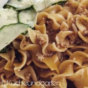 - Wenn es fertig ist gebe ich noch einen Spritzer Ketchup drunter zum abschmecken und binde die Soße wenn nötig noch etwas ab 🙂