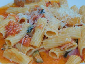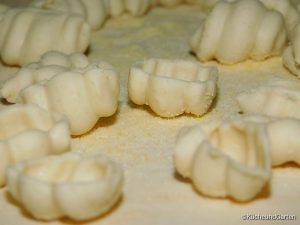 Die ersten Nudeln die ich ausprobieren habe,waren diese hier, die ich mit der Gnocchi-Matrize mit dem Röhrennudelvorsatz der Kitchen Aid gemacht habe. Der Teig war allerdings alles andere als perfekt, da er noch viel zu klebrig war, und der Großteil der Nudeln aneinander geklebt hat. Es braucht also ein wenig Übung bis der Teig wirklich