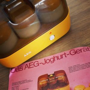 Nachdem ich am Montag das 50 Jahre alte Joghurt-Gerät von AEG meiner Oma abgeluchst habe, habe ich mir direkt Joghurtkulturen* „griechischer Art“ und Inulin* von Jean Pütz bei Amazon bestellt.