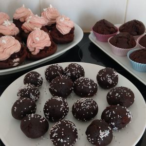 - Einen Teil der Muffins zerbröseln und mit der restlichen Buttercreme mischen. Etwa 20g Buttercreme pro 100g Muffinbrösel. Die Mischung gut vermischen und eventuell noch etwas Buttercreme hinzugeben, so dass sich Kugeln formen lassen.