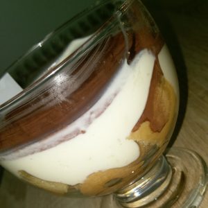 - Den Joghurt mit den restlichen Zutaten außer dem Kakao verrühren und über den Löffelbiskuit verteilen. für mind. 1-2h in den Kühlschrank stellen, vor dem servieren mit Kakao bestreuen.