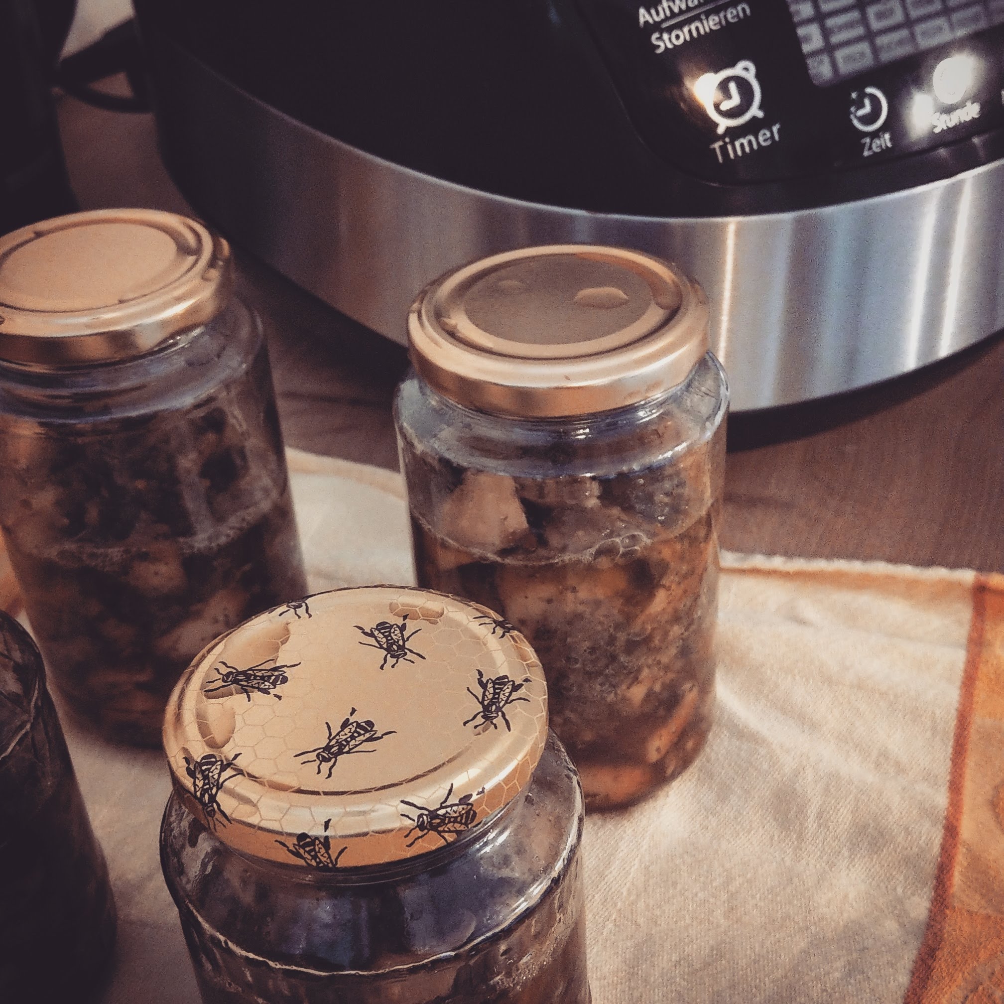Wichtig ist dabei z.B. dass alle Lebensmittel die Fleisch enthalten oder mit Fleisch in Berührung waren 2 Stunden bei 100 Grad eingekocht werden müssen. (In vielen Anleitungen wird das leider anders erklärt, wodurch die Gläser schnell schlecht werden)